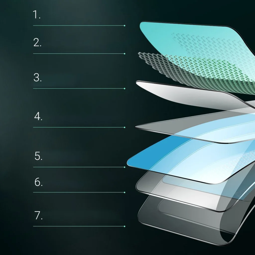 - Oleophobe felső réteggel a zsíros szennyeződésekkel szemben