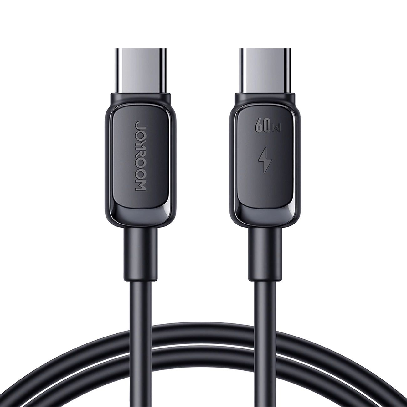 A Joyroom Multi-Color Series A14 kábel igazi csemege a gyors töltés rajongóinak. Lenyűgöző, akár 60 W-os teljesítményével rekordidő alatt tölti fel mobil eszközeidet. Nem kell többé várnod, hogy akkumulátoraid teljesen feltöltődjenek - a Joyroom kábellel gyorsan visszanyerheted teljes mobilitásod. De ez még nem minden. A Joyroom 60W-os kábel széles kompatibilitással rendelkezik mobil eszközökkel a USB C csatlakozóknak köszönhetően, rendkívüli tartóssággal, gyors adatátvitellel és használatának rendkívüli kényelmével. A Joyroom Multi-Color Series A14 USB-C / USB-C kábel főbb előnyei: - Gyors töltés egy szempillantás alatt. A kábel akár 60 W teljesítménnyel is képes eszközöket táplálni. - Zökkenőmentesen párosodik különféle eszközökkel. A beépített chip kezeli a kábel funkcióit - töltés vagy adatátvitel. - Tartós, erős, ugyanakkor rugalmas. A Joyroom kábel kiváló törésállósággal bír. - Késedelem nélküli adatátvitel a telefonodról. A kábel 480 Mbps sebességgel támogatja az adatátvitelt. - Kényelmes mindennapi használatra. Puha tapintású, kényelmes 1.2 m hosszúságú. Specifikáció: - Márka: Joyroom - Modell: Joyroom Multi-Color Series A14 S-CC100A141B - Csatlakozók: - USB-C - USB-C - Támogatott funkciók: töltés, adatátvitel - Teljesítmény: akár 60 W - Kábel hossza: 1.2 m - Anyag: TPE - Szín: fekete