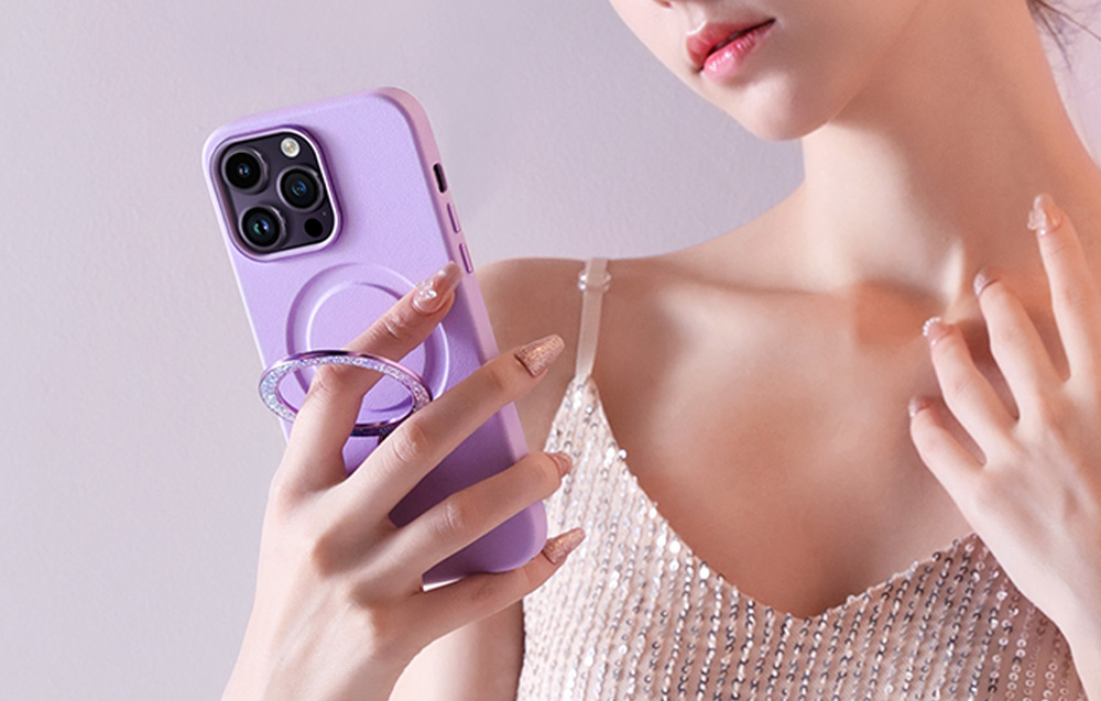 A Joyroom Dancing Circle tok támogatja a MagSafe funkciót, és rendelkezik egy praktikus gyűrűvel, amely fogantyúként szolgálhat. Így használhatod a MagSafe töltőket és kiegészítőket, és kényelmesen nézhetsz filmeket vagy folytathatsz videóhívásokat anélkül, hogy a készüléket a kezedben kellene tartanod.