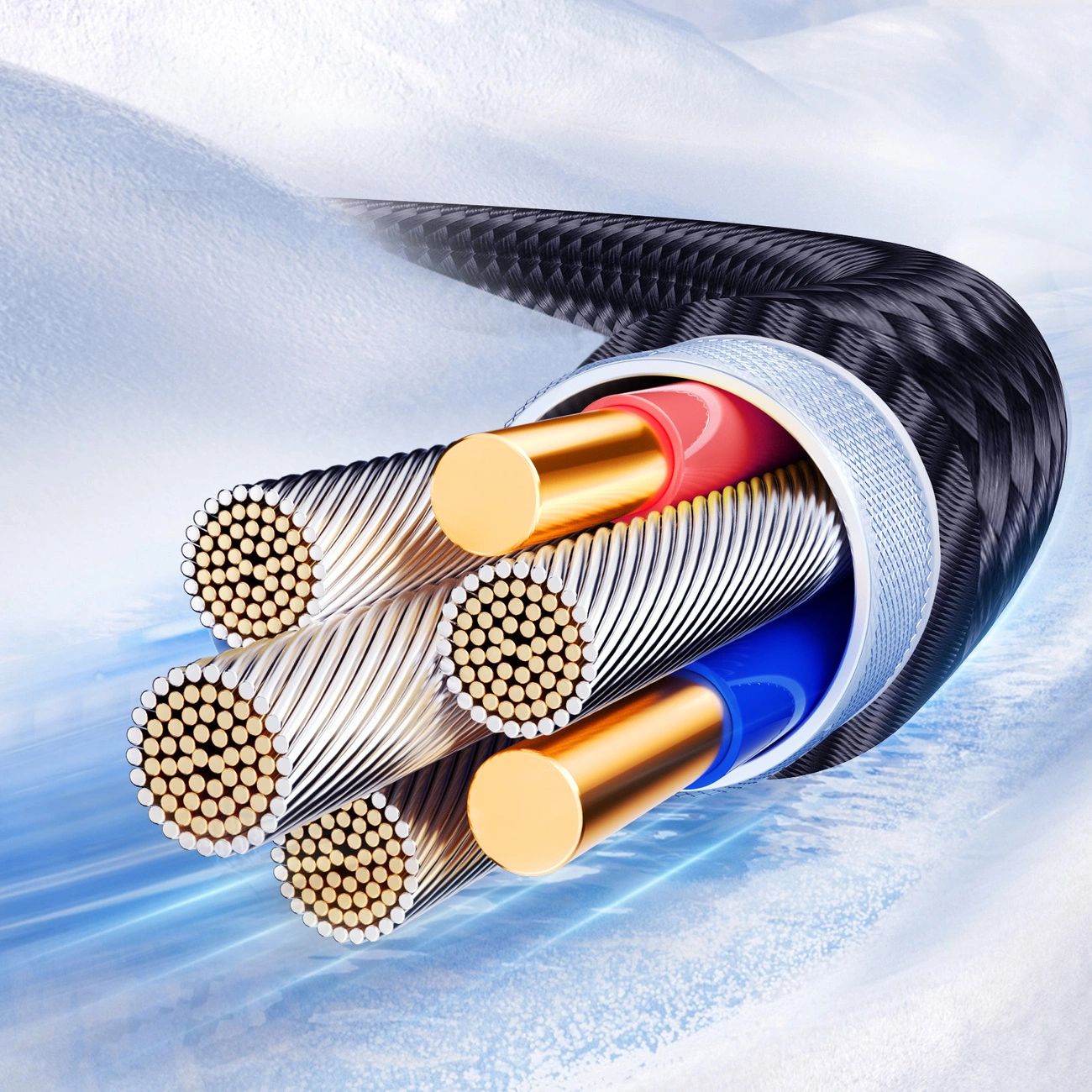 A fonott nylon és megerősített szerkezet révén a kábel több mint 10,000 hajlítást elvisel, ami rendkívül ellenállóvá teszi a mindennapi használat és mechanikai sérülések ellen.