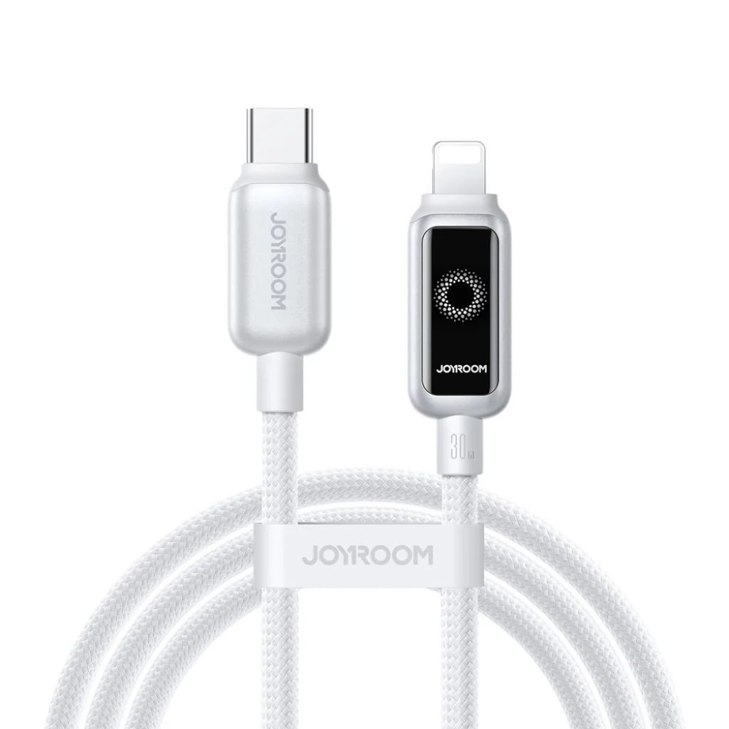 A Joyroom S-A55 StarFlight 30W USB-C - Lightning kábel intelligens és biztonságos megoldást nyújt az Apple készülékek mindennapi töltéséhez. Automatikus áramellátás megszakítással védi az akkumulátort a túltöltéstől. Beépített chipje intelligensen szabályozza a feszültséget és áramerősséget, így biztosítva a stabil, gyors és biztonságos töltést akár 30 W-ig. Színes LED kijelzője valós idejű töltési státusz jelzést biztosít. A szövött nylon, ónozott rézmag és cink ötvözetű fém elemek felhasználásával készült felépítése hosszú élettartamot garantál. Ez a kábel ideális intenzív, mindennapi használatra otthon, a munkahelyen és utazás során.