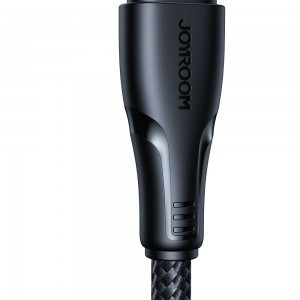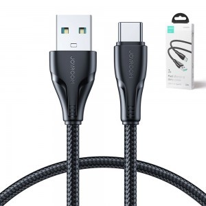 3A USB - USB C kábel gyors töltéshez és adatátvitelhez, 1.2 m, Surpass Series - Joyroom S-UC027A11 (fekete) Megbízható USB - USB C kábelre van szüksége, amely gyors töltést biztosít anélkül, hogy túlmelegedne? Válassza a Joyroom Surpass Series S-UC027A11 kábelt. Képes akár 3 A-t átvinni a kompatibilis eszközökre, vagy adatokat továbbítani akár 480 Mbps sebességgel. Emellett rendkívül tartós. A nejlon fonás erősen ellenáll a hajlításnak, és a csatlakozó és a kábel közötti érintkezési pont további megerősítést kapott, hogy kibírja az ismételt használatot. A Joyroom S-UC027A11 USB - USB C kábel legfontosabb előnyei gyors töltéshez és adatátvitelhez:- Gyors töltést biztosít túlmelegedés nélkül. A kábel akár 3 A áramot is tud adni - a gyártó számításai szerint 30 perc alatt akár 55%-ot is feltölt a Samsung S22 akkumulátorából.