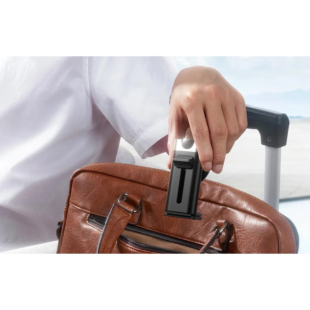A tartó kitűnik összehajtható kialakításával, és elég kicsi ahhoz, hogy könnyedén elférjen egy táskában vagy kézipoggyászban. Így könnyen magaddal viheted munkába, egyetemre vagy nyaralásra!