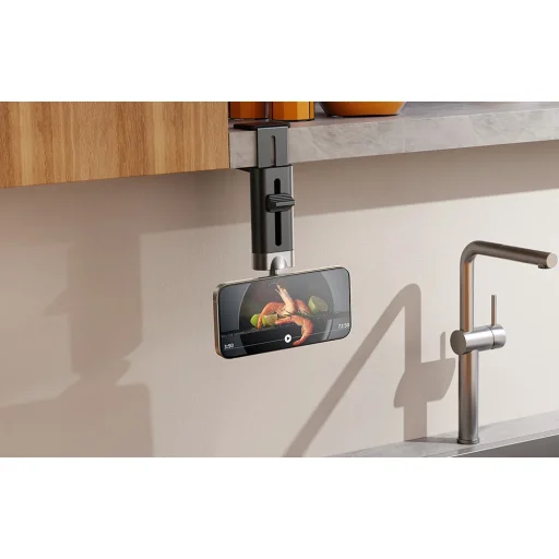 Az állítható rögzítőalap lehetővé teszi, hogy a tartót számos különböző helyen rögzítsd, például asztalokon, munkalapokon, üléstámlákon, poggyásztartókon, konyhai polcokon vagy akár repülőgépen található asztalokon is. Ideális azok számára, akik különféle helyzetekben szeretnék használni okostelefonjukat - főzés, munka, utazás vagy pihenés közben is.