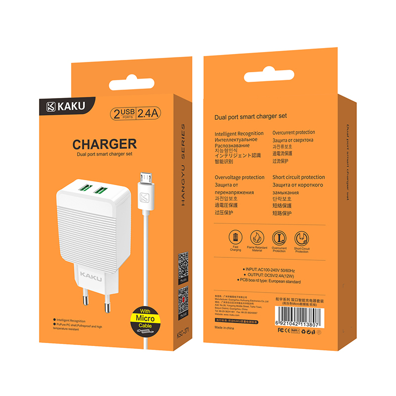 Termék leírás Hálózati töltő adapter2x USB aljzattalEgyszerre két eszköz töltése is lehetséges12W töltési teljesítménnyelKimeneti feszültség: 5V/2.4A(12W)Tartozék Micro USB kábellel