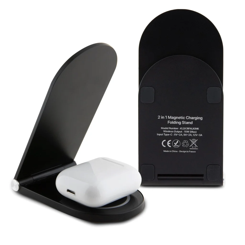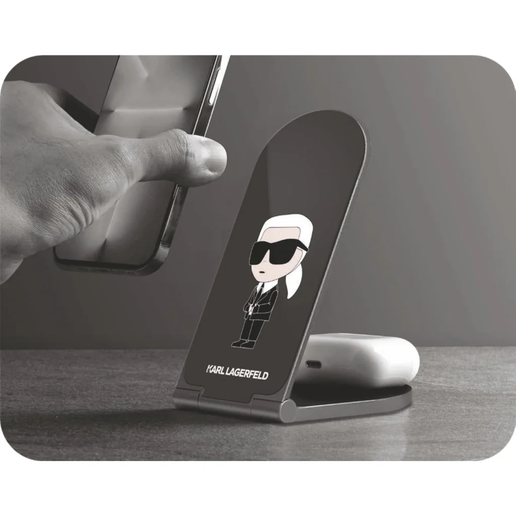 A Karl Lagerfeld Alumínium Asztali Vezeték Nélküli Mágneses Töltő 2 az 1-ben segítségével élvezheti a kényelmes töltést kábelrengeteg nélkül.