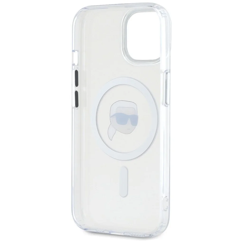 Termék leírás KARL LAGERFELD tok IPHONE 15 Plus-hoz, kompatibilis MagSafe-fel KLHMP15MHLSKIH (IML Metal K Head) fehér