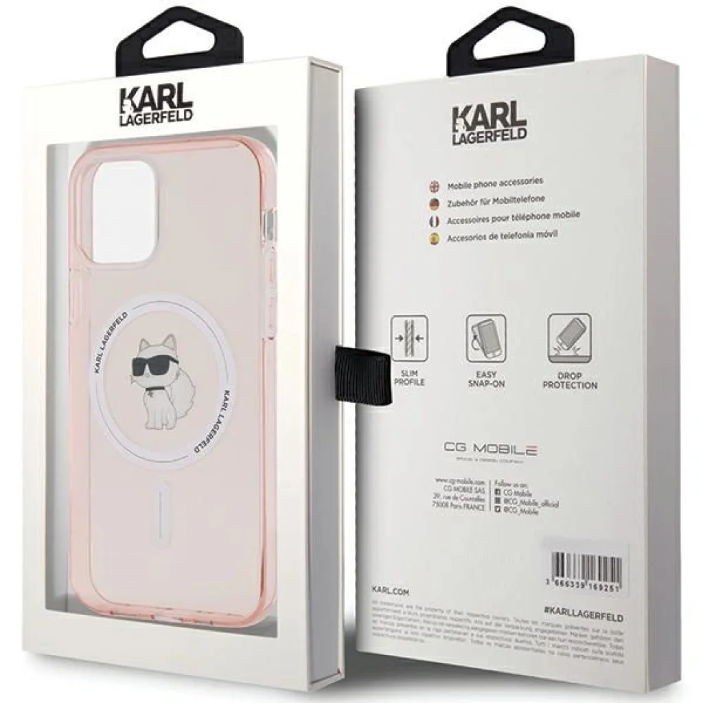 A kollekciót egy MagSafe mágneses gyűrűvel gazdagították, amely kompatibilis a MagSafe vezeték nélküli töltővel, biztosítva a gyors és egyszerű töltést. A tok a Karl Lagerfeld márka licence alapján készült.