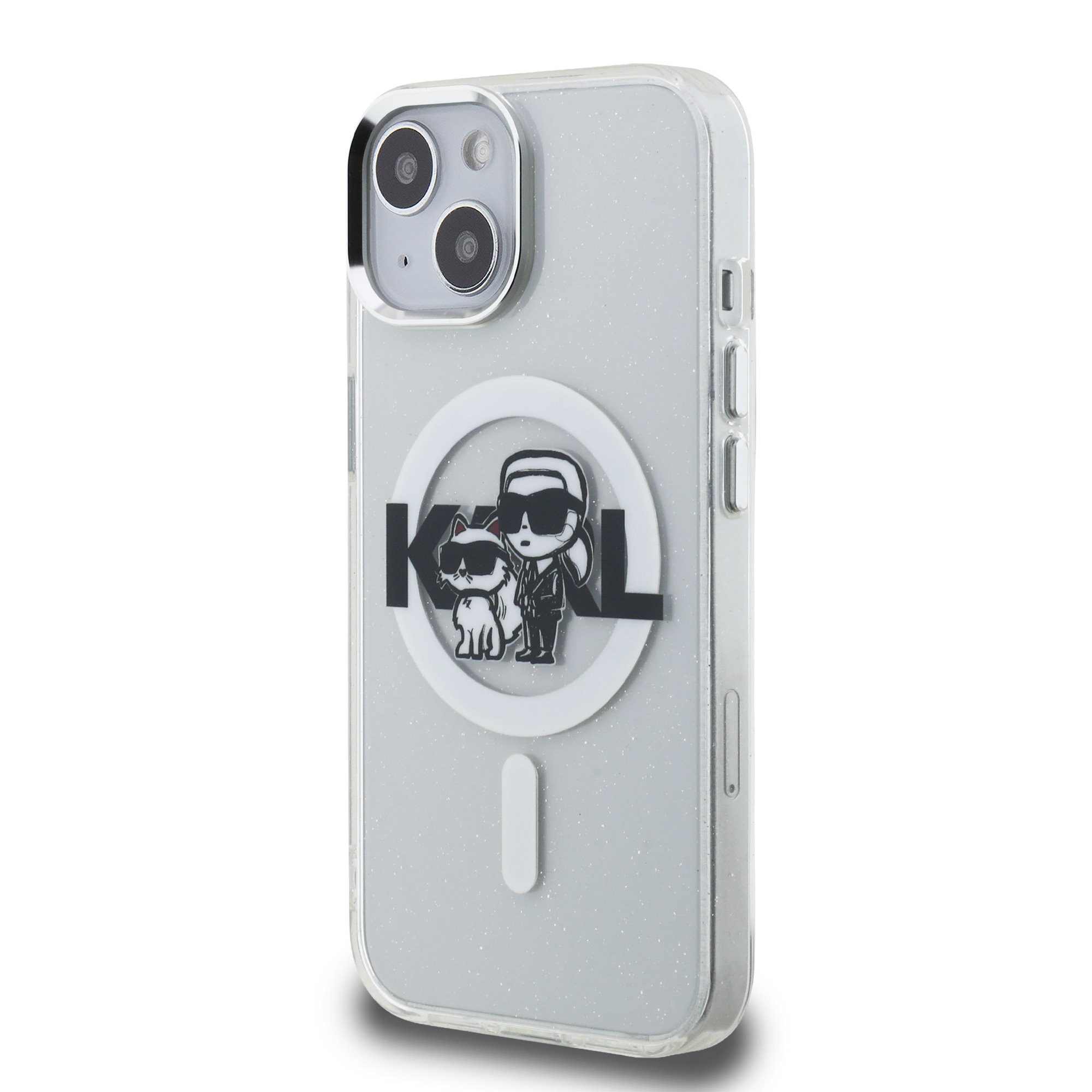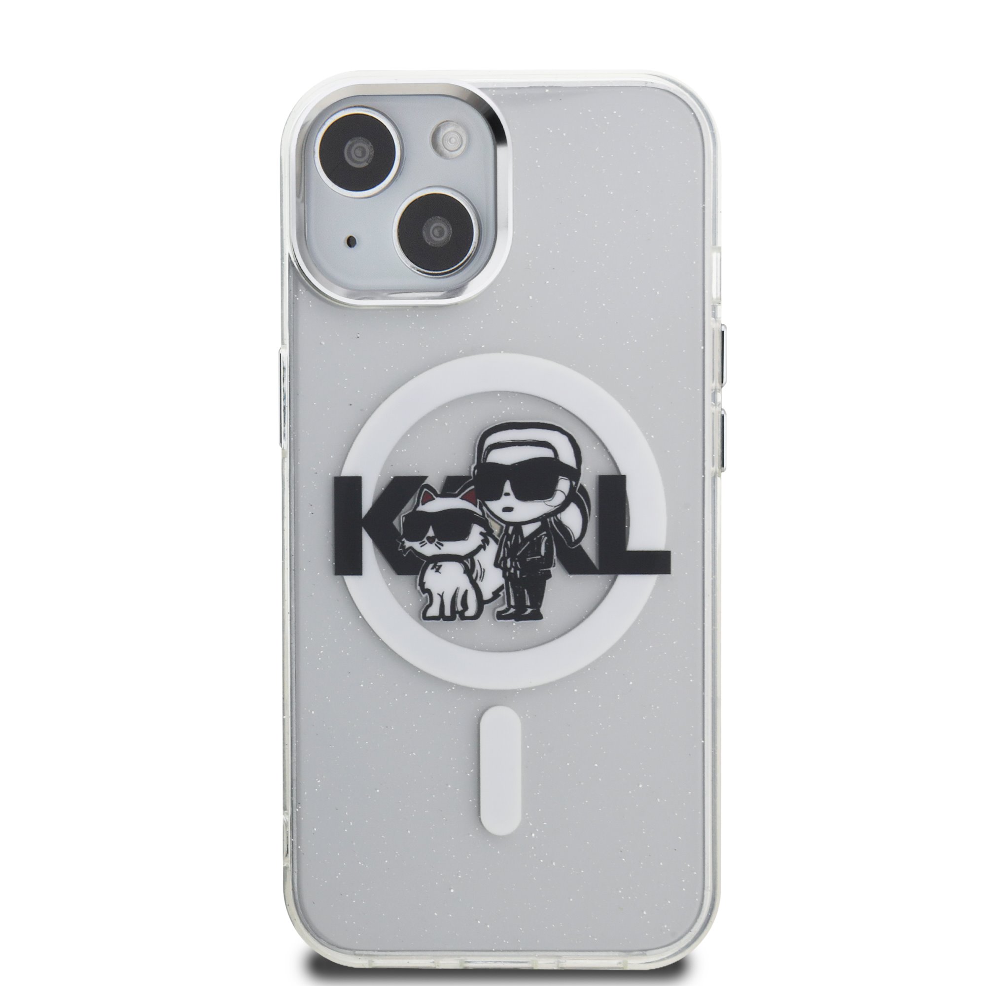 A Karl Lagerfeld IML Glitter Karl and Choupette Sketch MagSafe hátlap a tökéletes kiegészítő a telefonodhoz és az öltözetedhez, amely egyesíti a funkcionalitást és a stílust egyben.