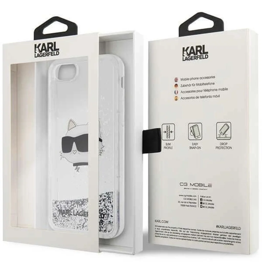 Egy kollekció védőtokokból, melyet a legendás Karl Lagerfeld, a világhírű divattervező fejlesztett ki. A tokot folyékony csillámpor-részecskék különböztetik meg, melyek a fényben csillognak és szög változtatásával változtatják elhelyezkedésüket. A klasszikus átlátszó tokot vizuális effektusokon kívül a tervező macskájának, a híres Choupette-nek a képe díszíti. A tok kiváló minőségű, tartós és kopásálló műanyagból készült. Erős és kemény polikarbonát (hátlap) és rugalmas TPU szilikon (oldalak) kombinációja.