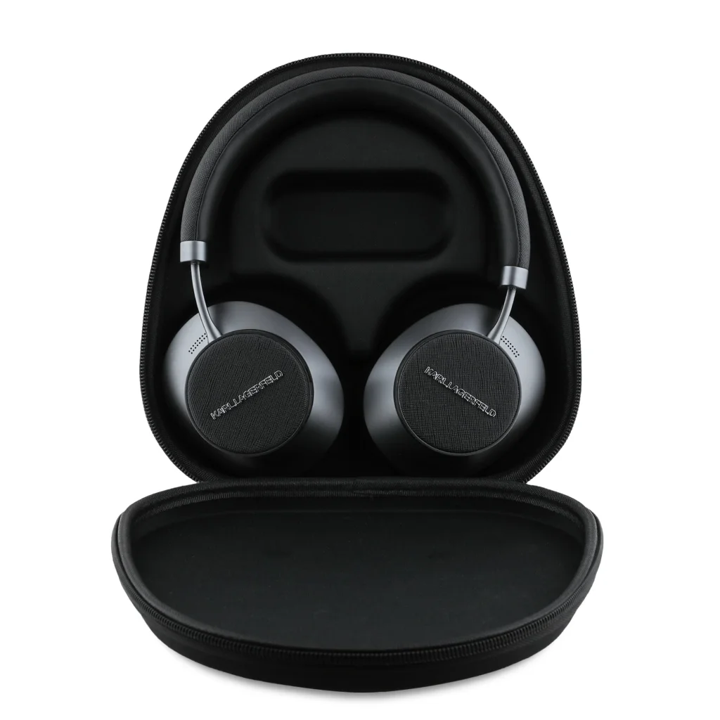A Karl Lagerfeld fejhallgató megjelenése önmagában is stílusos nyilatkozat. A letisztult fekete (vagy sötétszürke) árnyalat, a fém Karl Lagerfeld logók az oldalakon, valamint az elegánsan texturált felületek (mint a Saffiano-mintás hordtáska) a márka jellegzetes luxusát tükrözik. Az over-ear kialakítás, a puha, párnázott fülpárnák és a szintén párnázott, állítható fejpánt hosszantartó kényelmet biztosítanak, így órákon át élvezheti a zenehallgatást fáradtság nélkül.