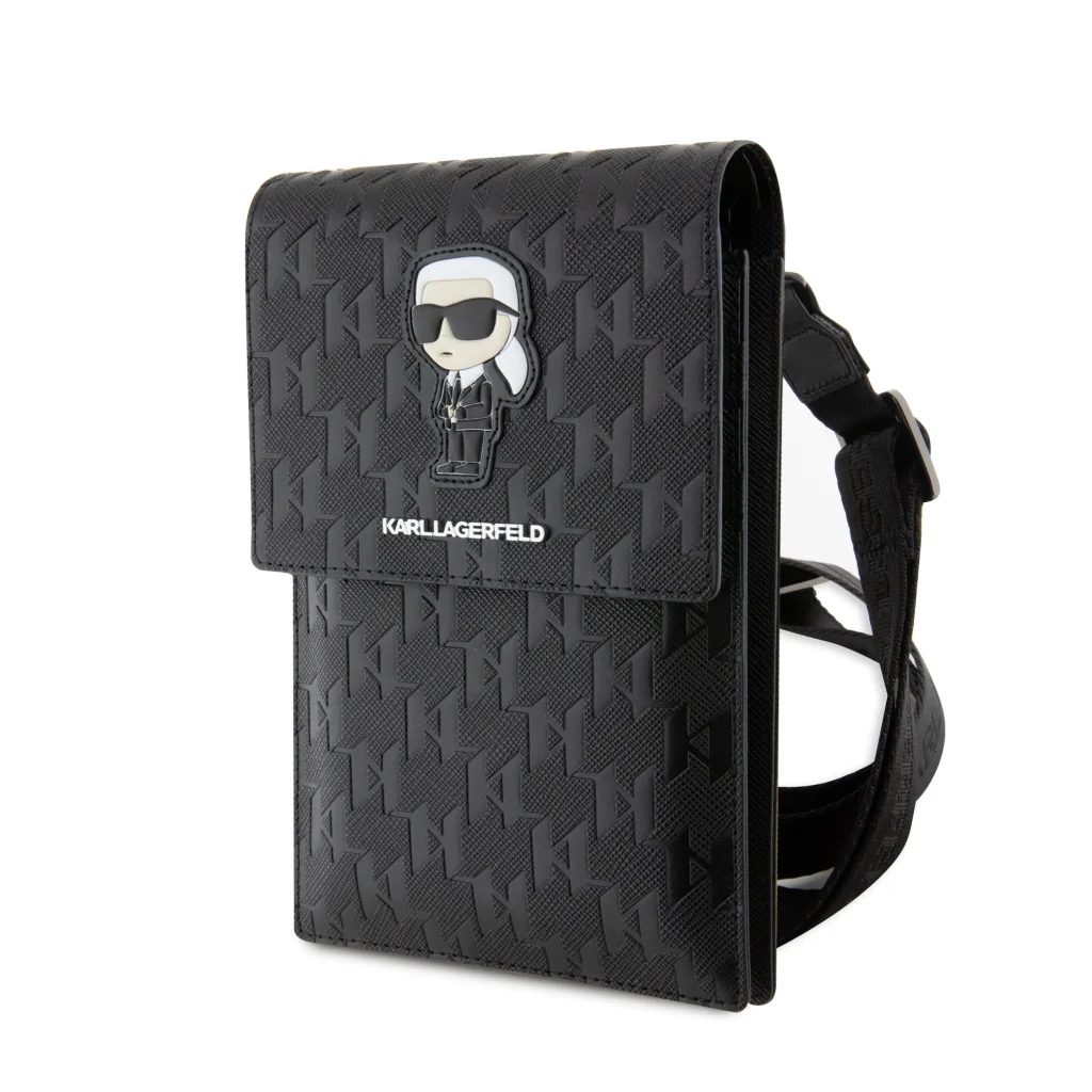 A Karl Lagerfeld Saffiano Monogram Wallet Phone táska tökéletes válltáska, nem csak a telefonhoz, pénztárcához, dokumentumokhoz, kulcsokhoz vonzó Ikonik NFT logóval is.