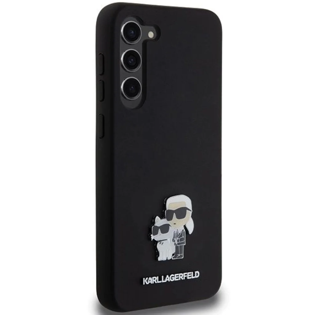 Karl Lagerfeld Szilikon Karl & Choupette Fém Kitűző tok Samsung Galaxy S23+ - fekete