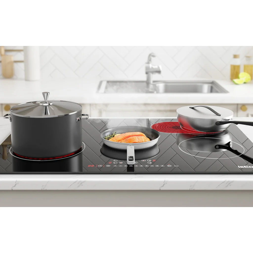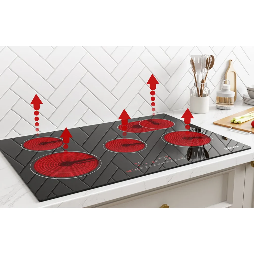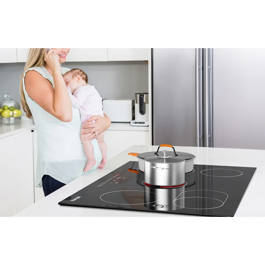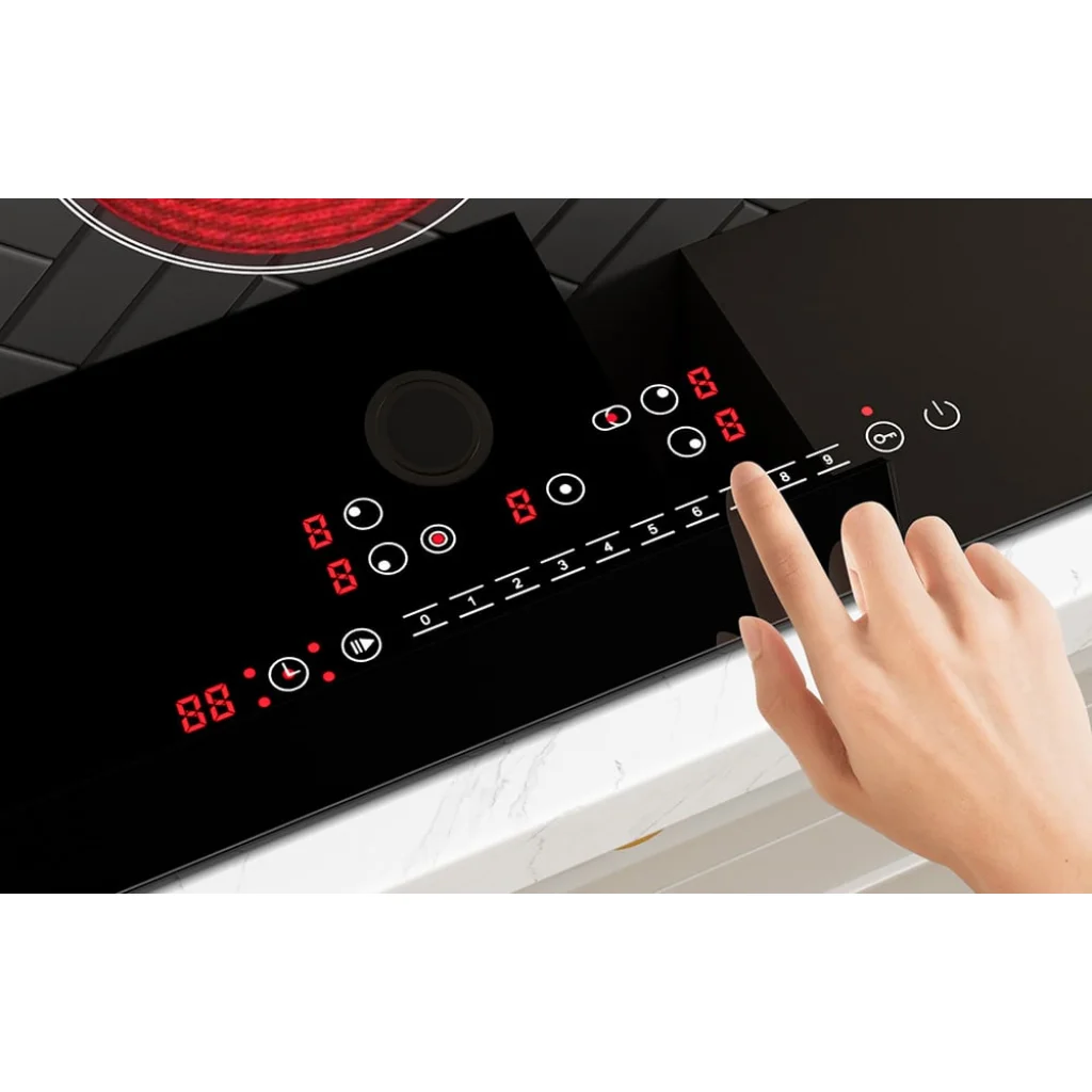 A 9 teljesítményszinttel ellátott érintőkijelző lehetővé teszi az egyes zónák egyszerű és pontos hőmérsékletbeállítását. Az olyan funkciók, mint a szülői zár, a maradékhő-jelző és az automatikus kikapcsolás garantálják a biztonságos használatot, így a tűzhely ideális választás a gyermekes családok számára.