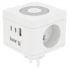 A kocka nem rendelkezik tápkábellel, és közvetlenül a fali aljzatba csatlakoztatható. Kevés helyet foglal, méretei 80 x 80 x 100 mm, ami ideálissá teszi szűk helyeken, ahol a hagyományos hosszabbítók nem működnek.