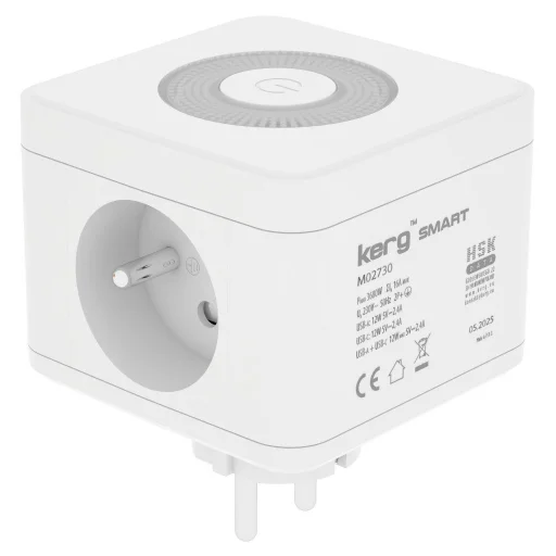 A KERG Smart 2-csatlakozós elosztó kocka USB-A + USB-C töltővel és LED lámpával egy funkcionális megoldás, amely kombinálja az elektromos aljzatot, a mobil eszközök töltőjét és egy kompakt fényforrást. Ez a termék tökéletes egy íróasztalra, éjjeliszekrényre, konyhába, műhelybe vagy munkahelyre, megkönnyítve a szervezést és a mindennapi munkát.