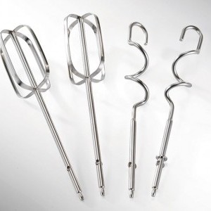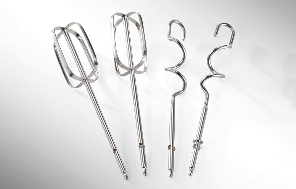 Praktikus tartozékok A mixer kétféle tartozékkal érkezik: habverők a habveréshez és dagasztóhorgok. Ezekkel könnyen elkészíthet könnyű keverékeket és nehezebb kelt tésztákat is. A tartozékok könnyen felszerelhetők és gyorsan cserélhetők egy kioldógomb megnyomásával a további kényelem érdekében.