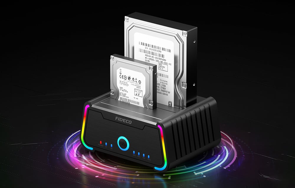 A FIDECO YPZ230R HDD dokkolóállomás egy megbízható eszköz, amely villámgyors, akár 5 Gbps adatátviteli sebességet és offline klónozási módot kínál, amely LED-del figyeli a folyamatot. Kompatibilis a macOS, Windows és Linux rendszerekkel, és támogatja a 2,5'' és 3,5'' SATA HDD/SSD meghajtókat. A beépített RGB háttérvilágítás stílusosabbá teszi a kényelmes használatot bármilyen munkaterületen.