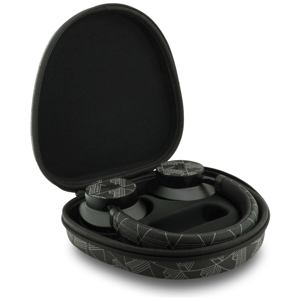 Exkluzív védőtok: A készlet tartalmaz egy stílusos hordtáskát tartós anyagból. A kemény tok hatékonyan védi a fejhallgatót a sérülésektől, miközben a puha bélés megóvja a karcolásoktól. A divatos monogram eleganciát ad, így a tok tökéletes kiegészítője a készletnek.