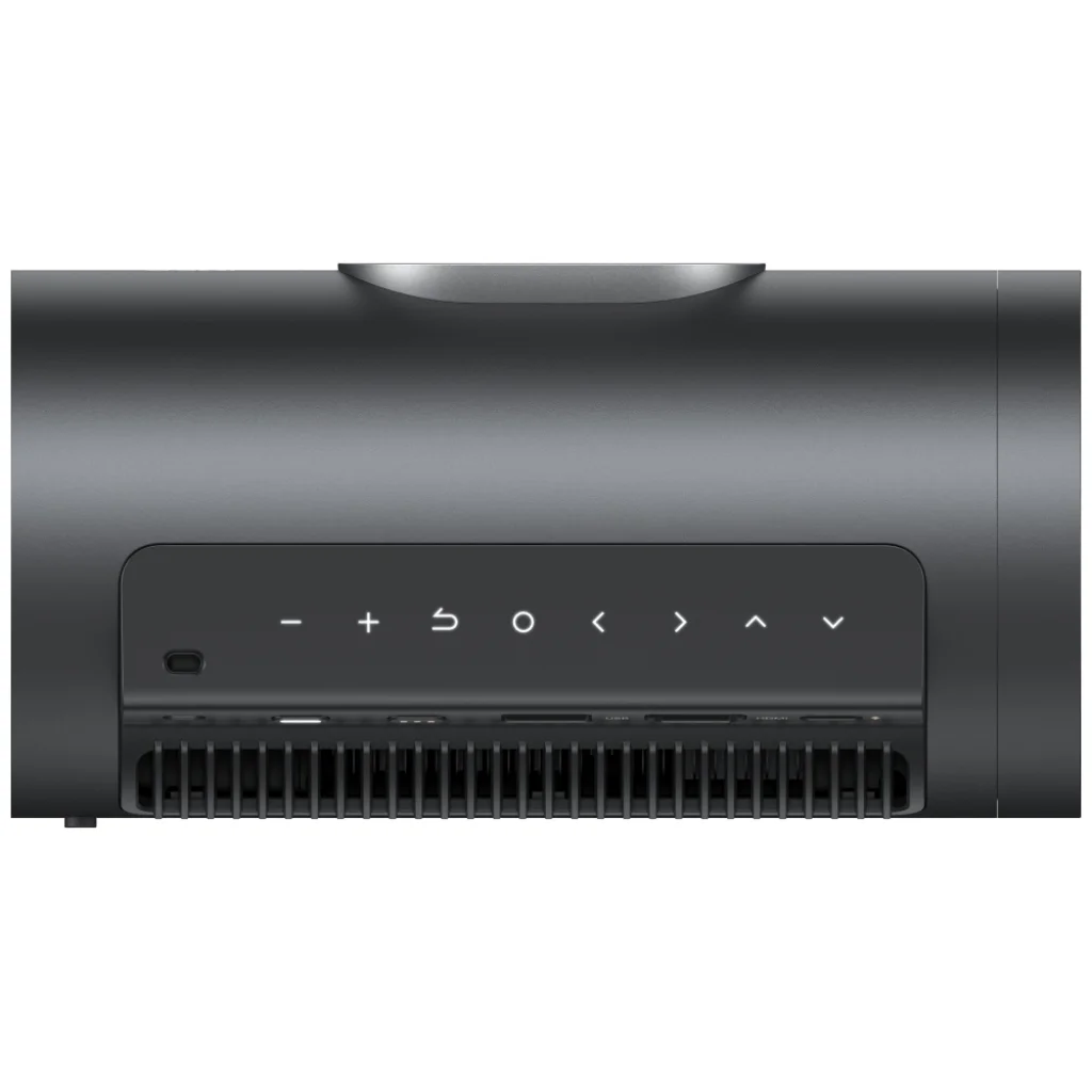A függőleges beállítási szög akár 127°-os, és a képek portré orientációban való megjelenítésének lehetősége különböző terekhez igazodik. A projektor tetején található érintővezérlő panel gyors és kényelmes használatot tesz lehetővé a távirányító nélkül.
