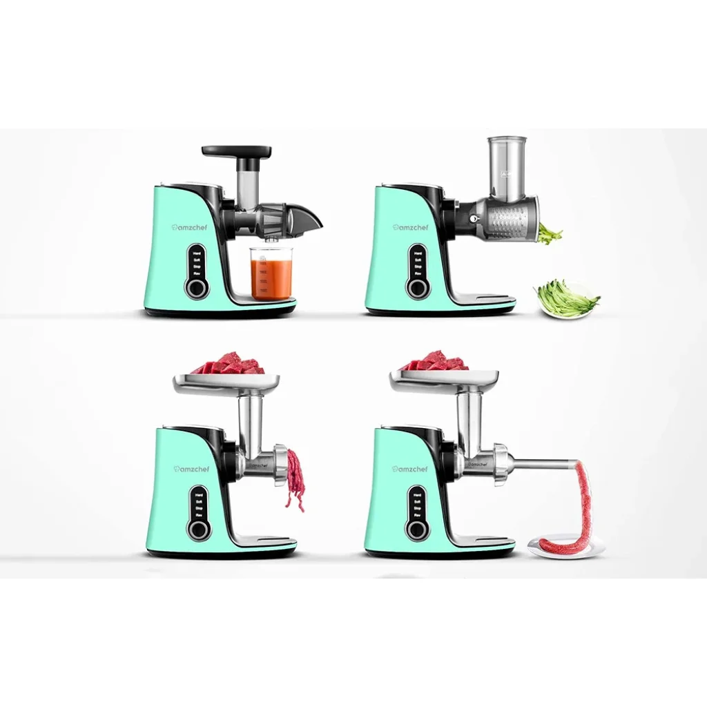 Az AMZCHEF GM3001-GN nem csak egy gyümölcscentrifuga - ez egy sokoldalú 4 az 1-ben konyhai készülék is. A külön megvásárolható kiegészítő tartozékokkal a gyümölcscentrifuga szeletelőgéppé, darálógéppé vagy kolbásztöltővé válik, így ideális választás bármelyik konyhába.