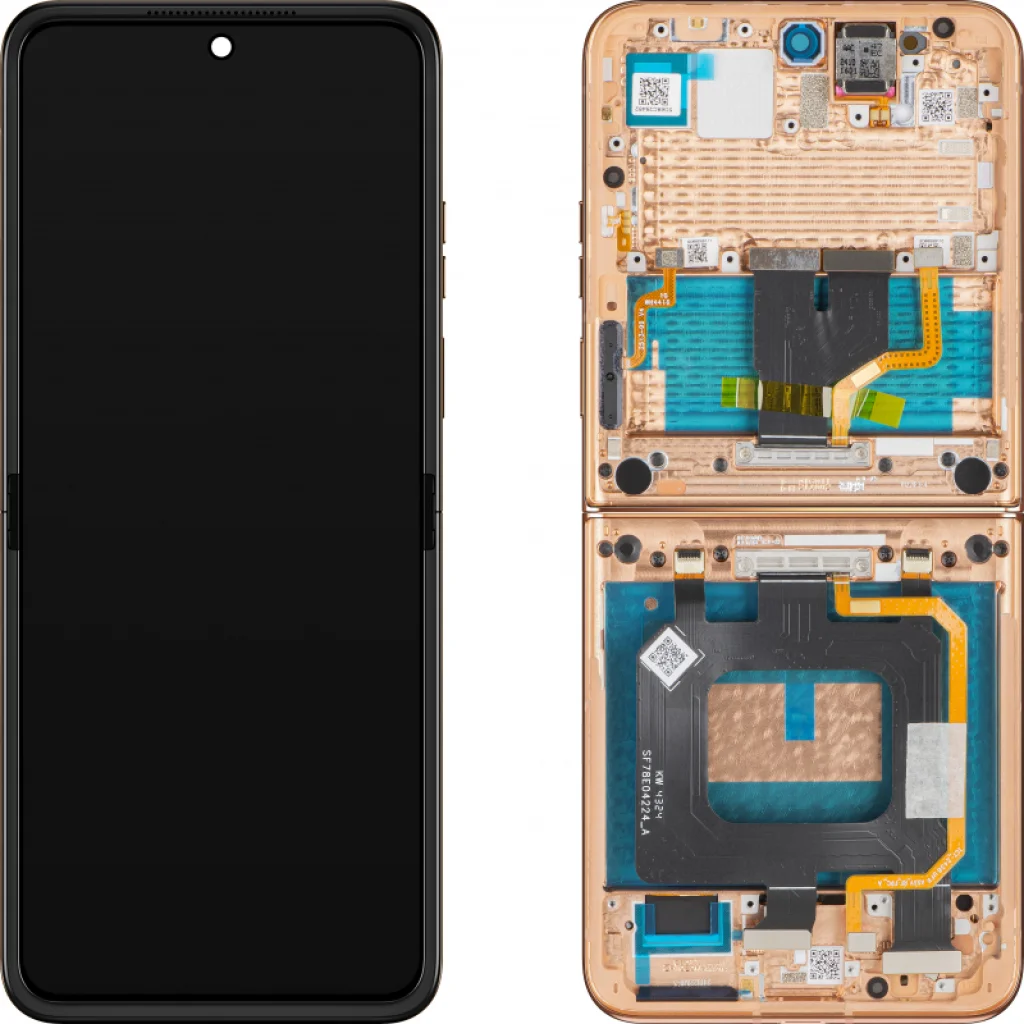 LCD kijelző modul Motorola Razr+ 2025 / Razr+ 2024 / Razr 50 Ultra készülékhez - Mocha Mousse. LCD kijelző érintőképernyővel/digitizerrel és keret szerelvénnyel - eredeti szerviz alkatrész. Ha a kijelződ repedt, karcos, halott pixelek vannak rajta, csíkok vagy vízkár érte, ez a termék segít megoldani a problémát. Ezzel az egységgel kicserélheti a Motorola Razr+ 2025 / Razr+ 2024 / Razr 50 Ultra teljes elülső burkolatát, beleértve a keretet, üveget, érintőképernyőt, LCD képernyőt, oldalsó gombokat. Típus: LCD kijelző modul Szín: Mocha Mousse Készülék: Razr 50 Ultra / Razr+ 2025 / Razr+ 2024 Minőség/Állapot: Szervizcsomag