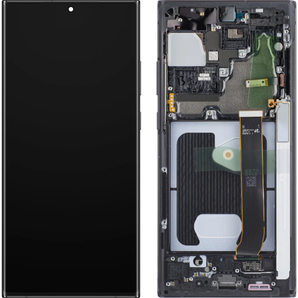 LCD kijelző modul Samsung Galaxy Note 20 Ultra 5G N986 / Note 20 Ultra N985 - Misztikus Fekete. Eredeti pótalkatrész a Samsung engedélyével, amelyet a telefonon lévő sérült rész cseréjére használnak. Tartalmazza az oldalsó gombokat, a mikrokapcsolós oldalgombokat és a keretet.