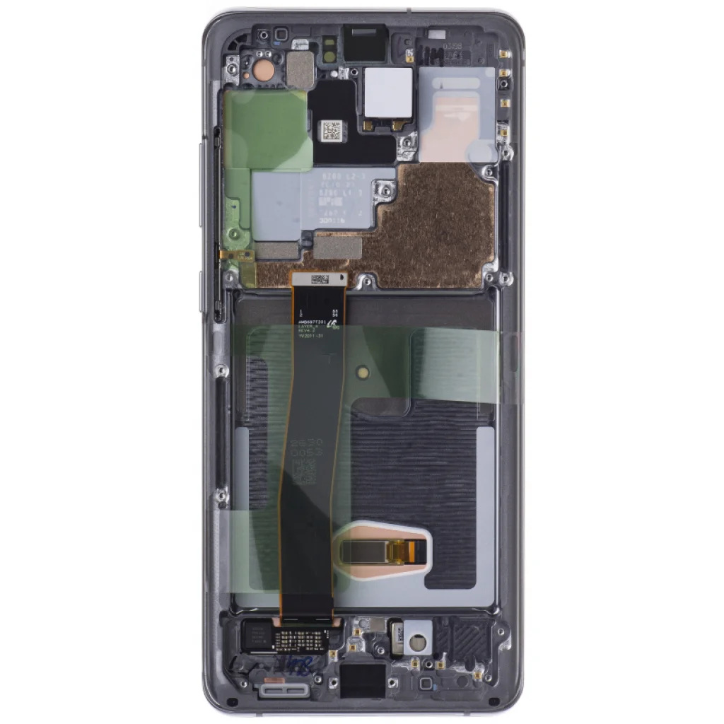 Szürke LCD kijelző modul Samsung Galaxy S20 Ultra számára. Eredeti szerviz alkatrész, a Samsung Galaxy S20 Ultra készülékhez való csere LCD kijelző modul.