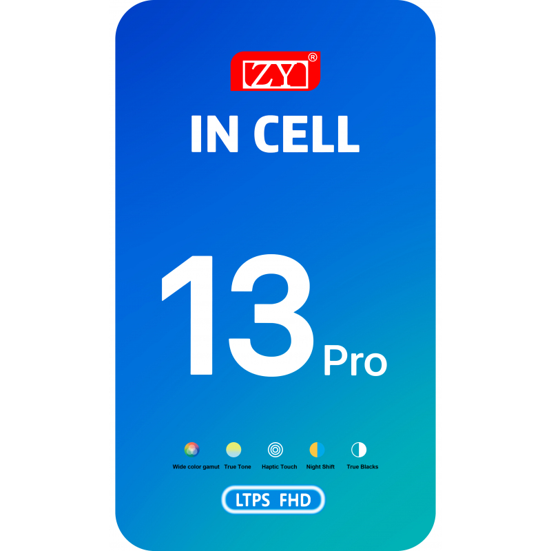LCD Kijelző Modul ZY Apple iPhone 13 Pro-hoz - Fekete, ZY licensz alatt készült alkatrész, amely a hibás vagy sérült kijelző cseréjére szolgál a telefonon. Egy speciális szalagot tartalmaz, ahol az eredeti hibás kijelző IC-jét szerelik fel, kiküszöbölve az eredeti kijelző hibáját és biztosítva a TrueTone funkció megfelelő működését. Változatos színskála és alacsony energiafogyasztás. Keretet és ragasztót tartalmaz. Megjegyzés: Az LCD kijelző modul cseréje után a fényérzékelő nem fog működni.