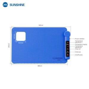 Az LCD Kijelző Szétválasztó Gép Sunshine LS3 Plus egy professzionális eszköz mobil eszközök javítására, jellemzője egy tágas 17 hüvelykes platform (kb. 380x250 mm), amely ideális okostelefonok, tabletek vagy nagy kijelzős órák, valamint érzékeny modulok, mint például kamerák kezelésére is - köszönhetően a középen található kivágásnak, melynek védett kialakítása védi a kamera lencséit. Az intelligens hőmérséklet-szabályozási technológia 40 és 120 Celsius fok között, 13 állítható szinten biztosítja a munkafolyamat hatékonyságát. Az időzített automata kikapcsolási rendszer, a gyerekzár funkció, és az utolsó beállítások megőrzése biztonságot, kényelmet és hatékonyságot nyújt. A magas hőmérsékletnek ellenálló szilikon anyag egyenletes hőeloszlást és hosszú élettartamot garantál, míg az intuitív vezérlők megbízható társsá teszik az LS3 Plust minden olyan technikus számára, aki a kijelző és érintőképernyő szétválasztásában maximális teljesítményt keres.