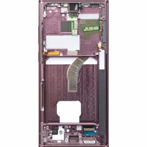 LCD kijelzőmodul Samsung Galaxy S22 Ultra 5G S908 - Burgundy. Eredeti pótalkatrész Samsung licenc alatt - eredeti szervizalkatrész. Kijelzőkerettel/alvázzal, oldalsó gombokkal és csengő/hangszóróval felszerelve.