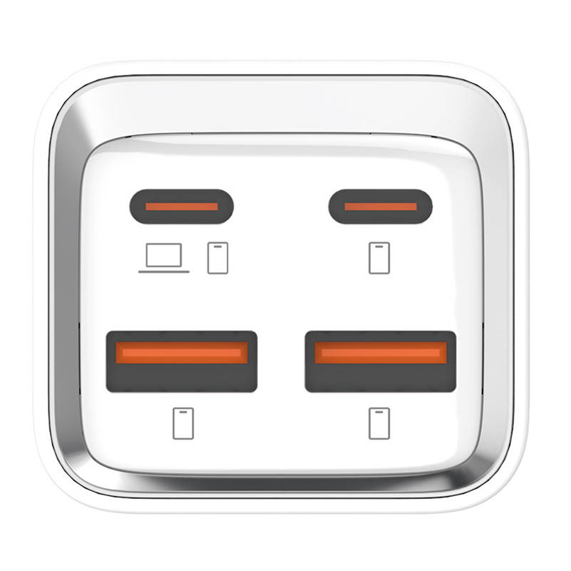 Akár 4 elérhető port (2x USB-C, 2x USB-A) lehetővé teszi akár 4 eszköz egyidejű csatlakoztatását a töltőhöz. Így például kényelmesen töltheti okostelefonját, laptopját, táblagépét és vezeték nélküli fejhallgatóját.