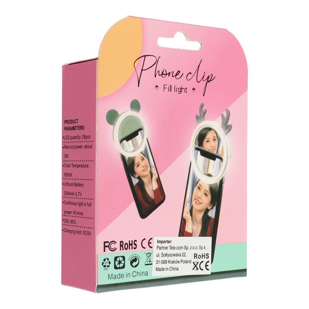 Elbűvölő LED körfény RK12 szelfilámpa, amelyet azoknak a okostelefon-felhasználóknak terveztek, akik értékelik a funkcionalitást és az esztétikát. A lámpa közvetlenül a telefonra szerelhető, egyenletes és lágy megvilágítást biztosít az arcnak fotózáskor, videók rögzítésekor vagy élő közvetítés során. Az állatfül motívummal készült dizájn kiemeli a terméket más eszközök közül, és ajándékként is tökéletes. A masszív műanyag ház garantálja a tartósságot, a kis méret és praktikusság pedig lehetővé teszi, hogy az RK12 bárhová könnyedén magával vigye. Ez egy praktikus telefontartozék, amely javítja a fotók minőségét és minden szelfihez hozzáad egy kis bájt. Kompakt méretének és könnyű kialakításának köszönhetően ideális a mindennapi használatra - mind otthon, mind utazás közben. A termék beépített akkumulátorral, USB-C töltőcsatlakozóval és USB-A - USB-C kábel tartozékkal van felszerelve. Specifikáció: