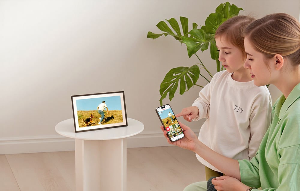 A készülék lehetővé teszi, hogy azonnal válaszoljon a kapott fényképekre és videókra - csak érintse meg a képernyőt, és küldjön hangulatjeleket, például egy szívet vagy egy mosolyt. A funkció a közösségi médiába való bejelentkezés nélkül működik, így könnyen kommunikálhatsz szeretteiddel. Egyetlen kerethez akár 512 felhasználó is hozzáadható, így a világ minden tájáról érkező családtagok és barátok együtt állíthatják össze az emlékek galériáját.