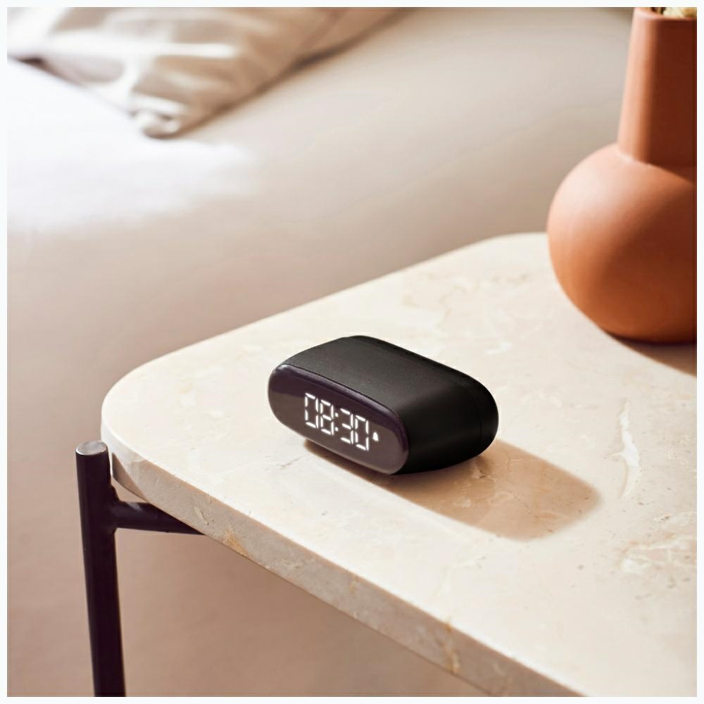 Ez a praktikus, műanyagból és alumíniumból készült ébresztőóra tökéletes kis polcokra és utazáshoz is. A töltési idő körülbelül 4 óra, és USB-C kábellel táplálható. Ezen kívül a Minut ébresztőóra szundikáló funkcióval és érintésvezérléssel is rendelkezik, ami még kényelmesebbé teszi a használatát.