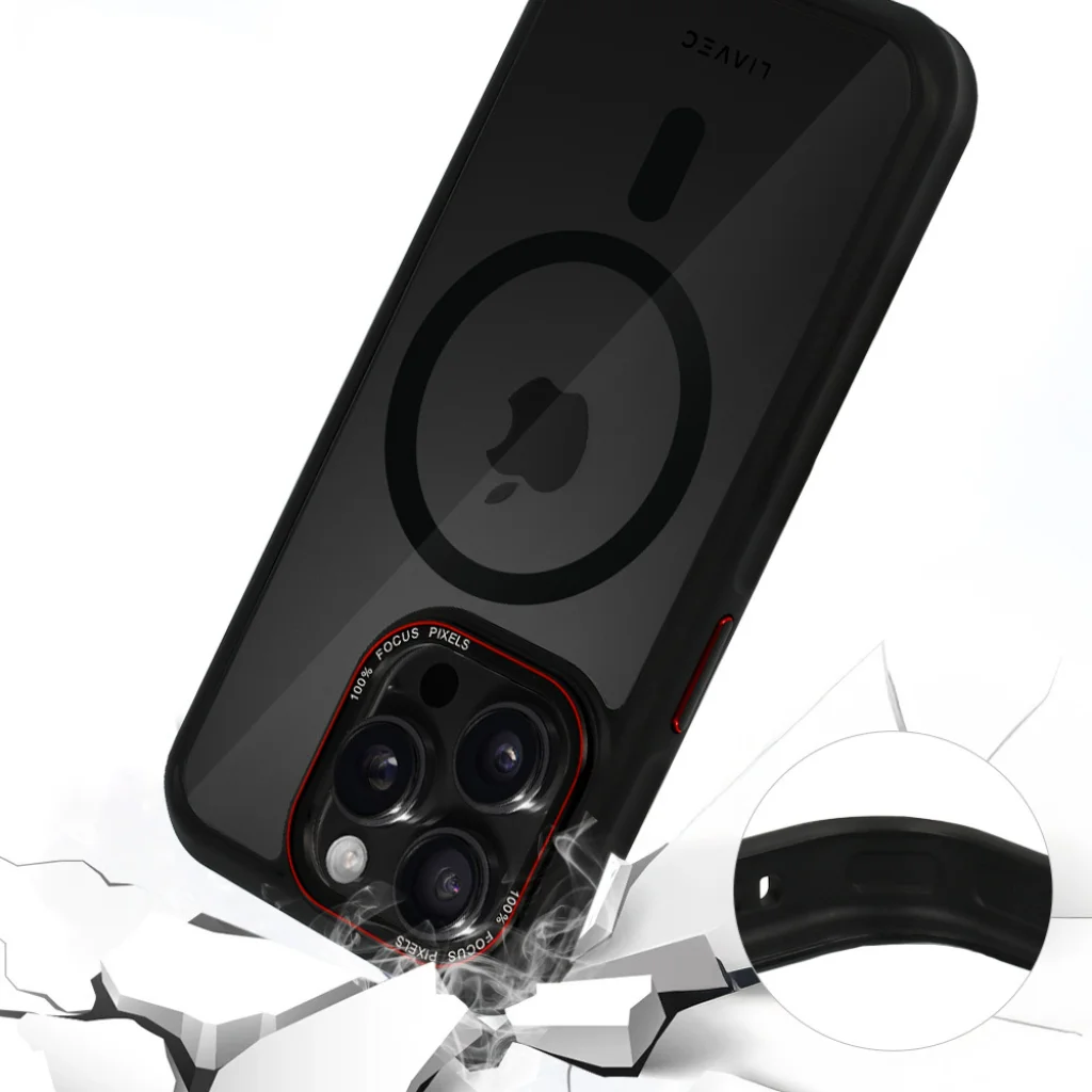 A beépített, nagy teljesítményű MagSafe mágnesgyűrű révén a Liavec tok zökkenőmentes kompatibilitást biztosít minden MagSafe tartozékkal. Élvezze a gyors és biztonságos vezeték nélküli töltést anélkül, hogy levenné a tokot, és csatlakoztasson MagSafe pénztárcákat, autós tartókat vagy más kiegészítőket egyetlen kattintással. A pontosan illeszkedő mágnesek stabil és megbízható kapcsolatot garantálnak.