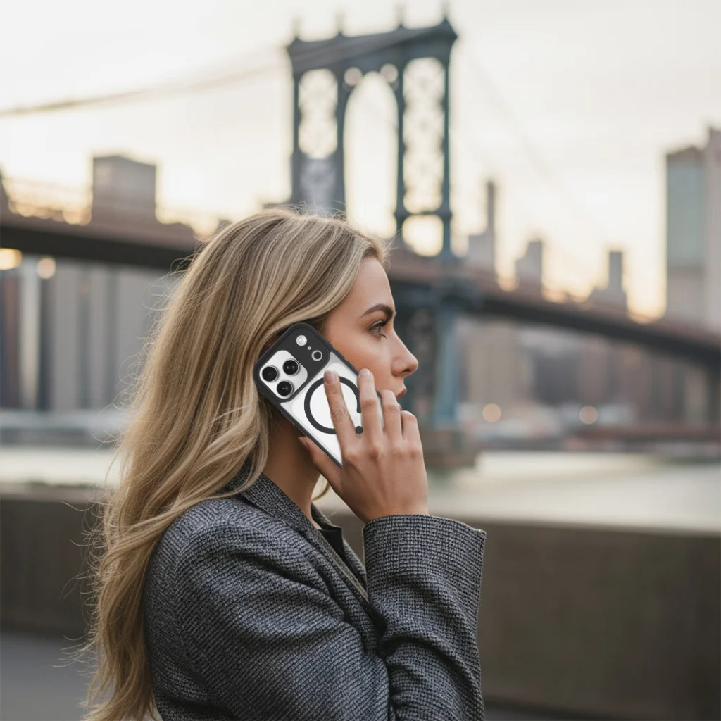 - Elegáns matt fekete felület: A klasszikus fekete szín időtlen eleganciát kölcsönöz, és bármilyen stílushoz tökéletesen illeszkedik. A matt felület ellenáll az ujjlenyomatoknak és a zsírfoltoknak, így telefonja mindig makulátlanul néz ki.