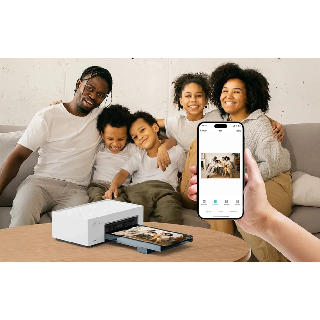 Hívja meg szeretteit, hogy együtt nyomtassanak A nyomtató iOS és Android eszközökkel, valamint PC-kkel és Mac-ekkel is kompatibilis, így kényelmesen átviheti és kinyomtathatja fotóit okostelefonjáról, laptopjáról vagy asztali számítógépéről. Az univerzális USB-C port stabil vezetékes kapcsolatot biztosít, és akár öt felhasználó is csatlakozhat egyszerre, így gyorsan és kényelmesen készíthetnek és nyomtathatnak emlékeket együtt családi összejövetelek vagy partik alkalmával. Ez a rugalmasság lehetővé teszi, hogy korlátozás nélkül, tökéletes minőségben ossza meg emlékeit.