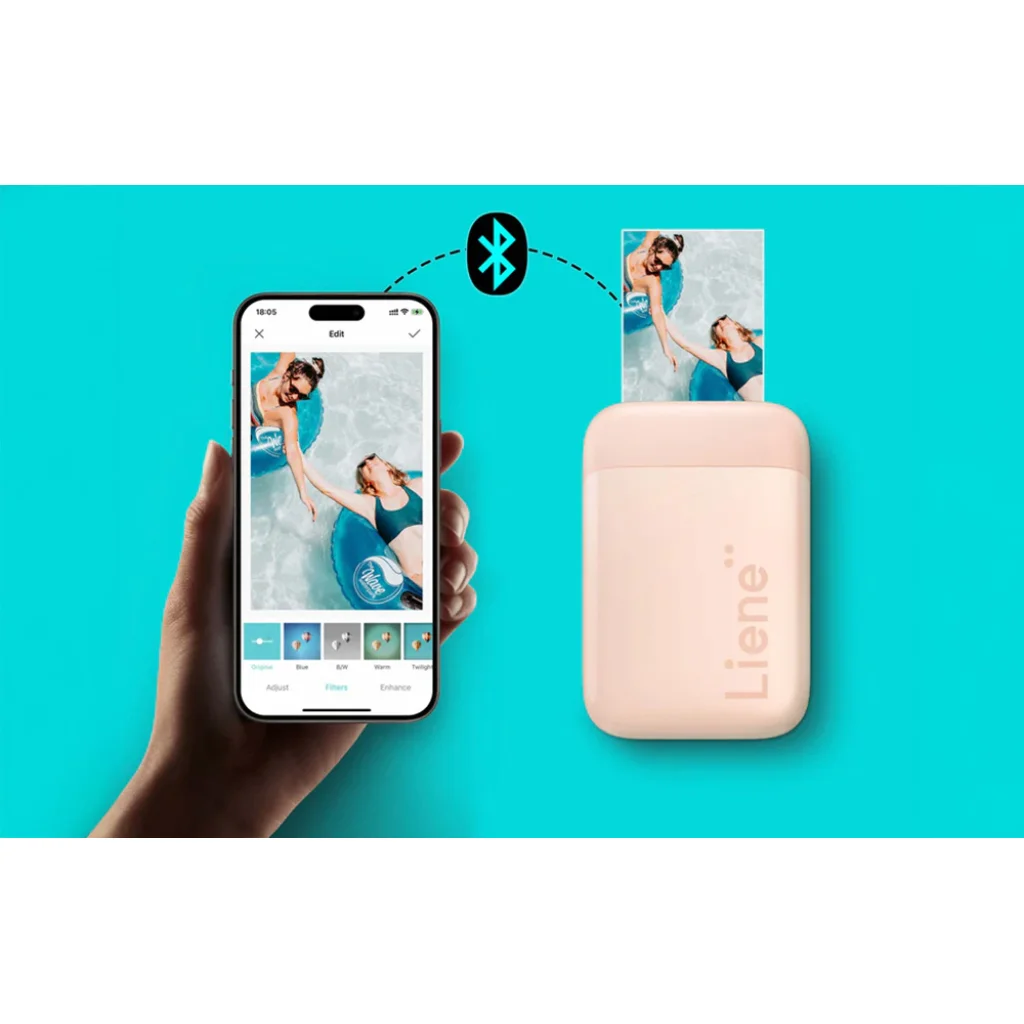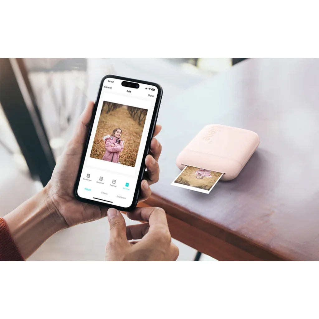A Liene Pearl hordozható fotónyomtatóval másodpercek alatt tartós, öntapadó nyomatokat készíthet okostelefonjáról – tinta és kábelek nélkül. A könnyű, zseb méretű készülék Bluetooth-on keresztül csatlakozik iOS és Android eszközökhöz, a Zink® technológia pedig tiszta, vízálló és maszatolásmentes nyomatokat biztosít. A fotókat előre szerkesztheti a Liene Photo alkalmazásban, és a rövid nyomtatási időnek köszönhetően a nyomtató bármikor készen áll a használatra. A kényelmet kiegészíti a gyors papírcsere érdekében csúszó fedél, a nyomtatófej tisztító funkciója és egy 50 lap Zink papírból álló kezdőcsomag.
