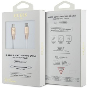 A Guess GULMARG USB-C - Lightning kábel a stílus, a funkcionalitás és a megbízhatóság tökéletes ötvözete, amelyet kifejezetten az Apple készülékek felhasználóinak igényeire szabtak. Ez a 1,5 méteres, elegáns világos arany színű kábel nem csupán egy töltő- és adatátviteli eszköz, hanem egy divatos kiegészítő is, amely tökéletesen illeszkedik a Guess márka prémium esztétikájához.