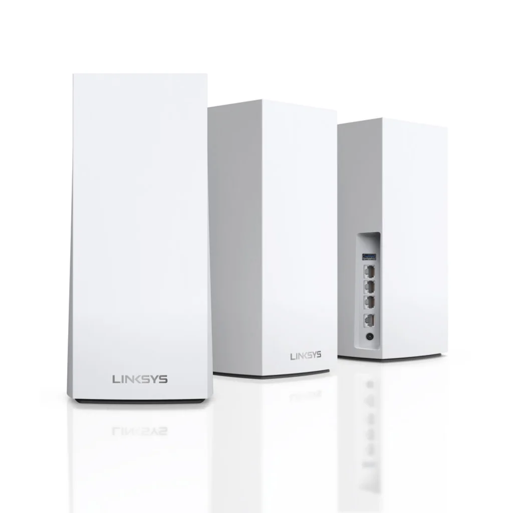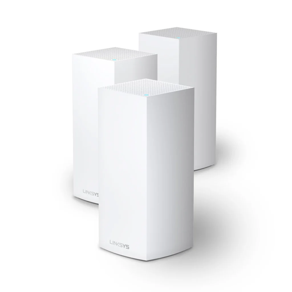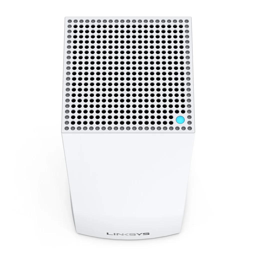 A Linksys Velop MX12600 egységek elegáns, minimalista és modern fehér kialakításukkal tökéletesen illeszkednek bármilyen otthoni környezetbe. Vertikális, torony alakú formájuk nem csak esztétikus, hanem hozzájárul az optimális Wi-Fi jel szóródásához és a hőelvezetéshez is a felső szellőzőrácsokon keresztül. A diszkrét LINKYS logóval ellátott egységek szinte észrevétlenül olvadnak be a belső térbe, miközben erőteljes Wi-Fi jelet biztosítanak otthona minden sarkában.