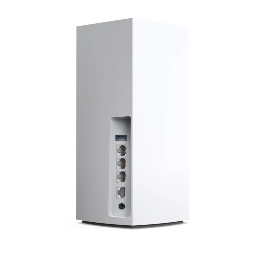 Minden Linksys Velop MX4200 egység számos csatlakozási lehetőséget kínál a vezetékes és vezeték nélküli eszközök számára. A hátoldalon elhelyezett három Gigabit Ethernet LAN port és egy Gigabit Ethernet WAN/LAN port lehetővé teszi a vezetékes eszközök, mint például okostévék, játékkonzolok vagy NAS szerverek csatlakoztatását a maximális sebesség és stabilitás érdekében. Ezen felül egy USB 3.0 port is rendelkezésre áll, külső tárolók vagy más perifériák hálózati megosztására, tovább növelve a rendszer sokoldalúságát.