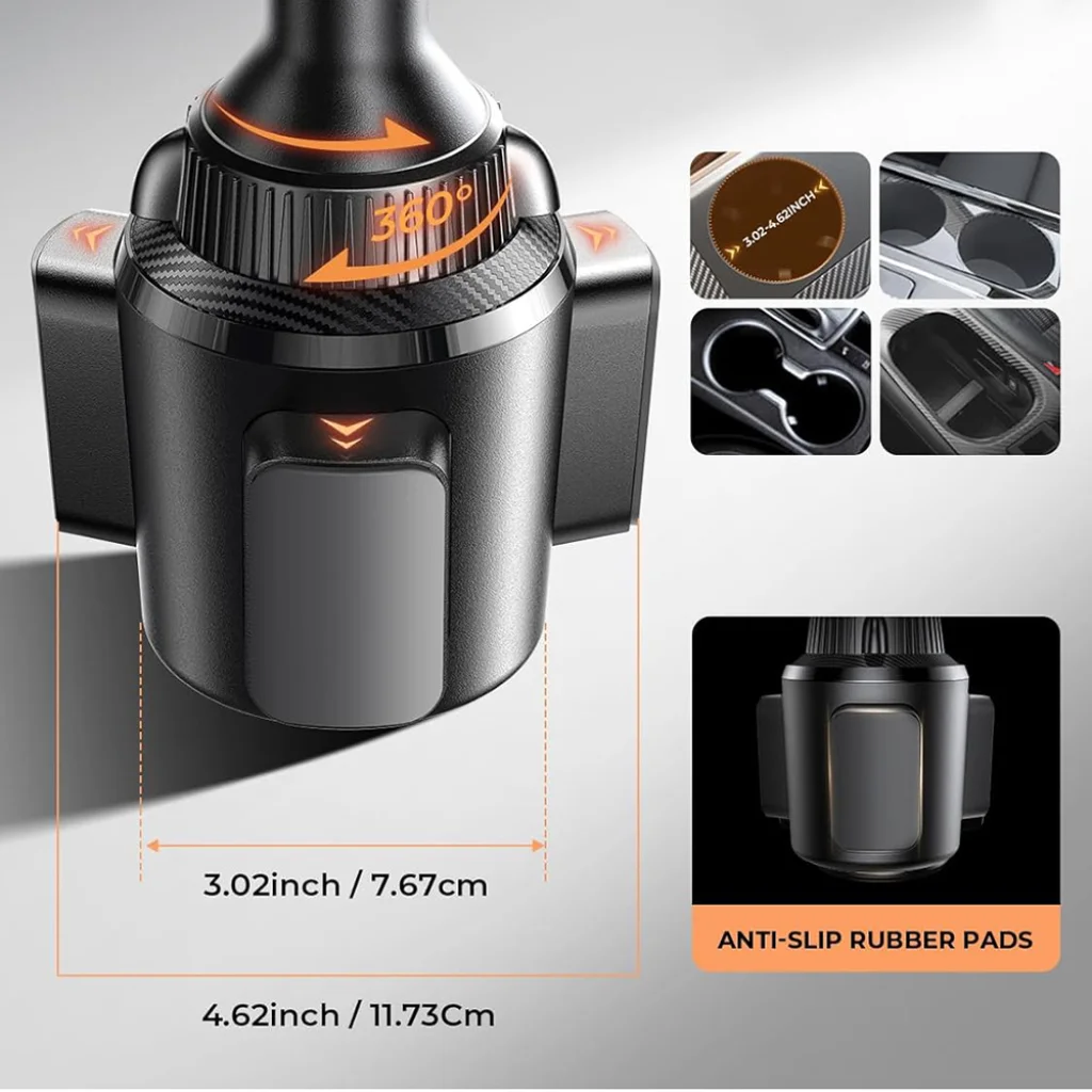 • Univerzális illeszkedés: A tartó innovatív, bővíthető alja (átmérője 7.67 cm és 11.73 cm között állítható) tökéletesen illeszkedik a legtöbb autós pohártartóba, garantálva a rázkódásmentes és stabil rögzítést. Az alján található csúszásgátló gumipárnák extra védelmet nyújtanak és megakadályozzák az elmozdulást.