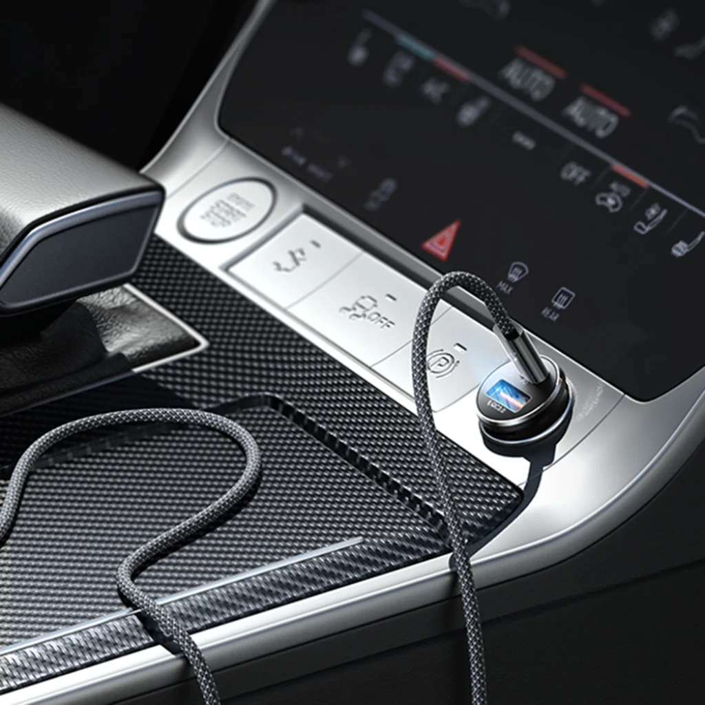 - Diszkrét LED jelzőfény: A beépített kék LED fény nem csak a töltő működését jelzi, hanem egy elegáns, finom megvilágítást is biztosít a sötétben, megkönnyítve a portok megtalálását és a csatlakoztatást éjszakai vezetés közben.