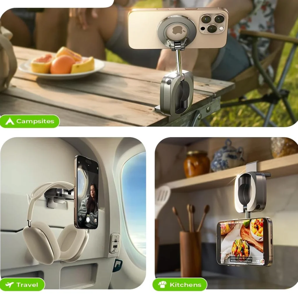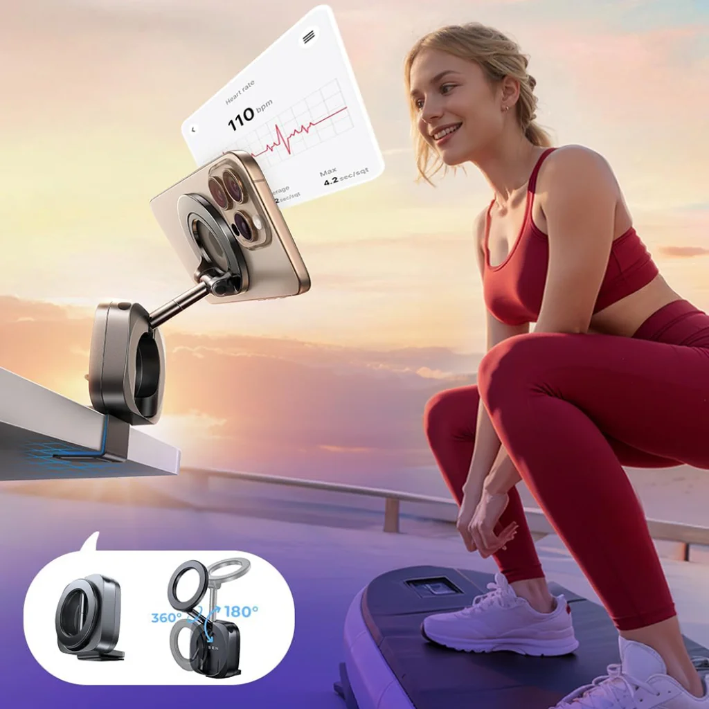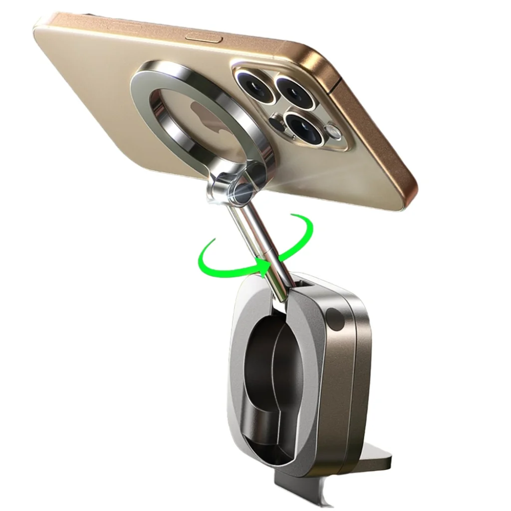 • Korlátlan betekintési szög: A 360°-ban forgatható mágneses fej és a 180°-ban dönthető, összecsukható kar lehetővé teszi, hogy telefonod álló vagy fekvő pozícióba állítsd, és mindig a legkényelmesebb látószöget válaszd. Ideális navigációhoz, videóhívásokhoz, filmnézéshez vagy edzéskövetéshez, maximális rugalmasságot nyújtva.
