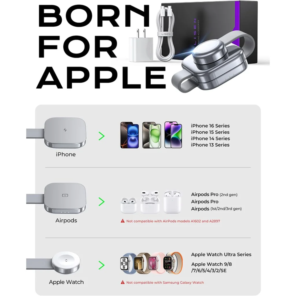 Ez a töltőállomás kifejezetten az Apple ökoszisztémához készült, maximális kompatibilitást biztosítva a legnépszerűbb eszközökkel: