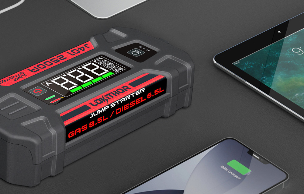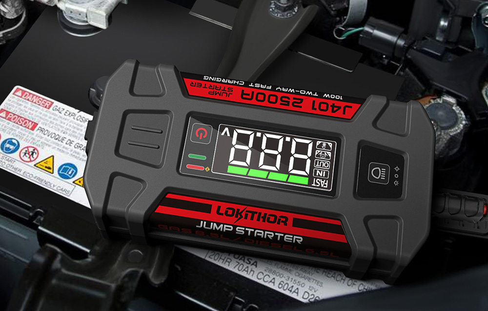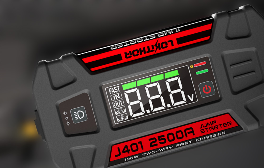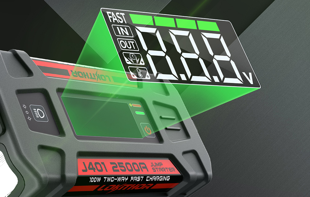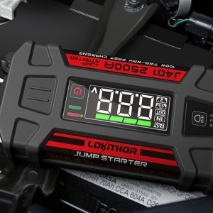 A Lokithor indítógép kényelmes 3,75"-os kijelzővel rendelkezik, ami megkönnyíti az információk elérését. Azon olvasható a fordított polaritás vagy a magas/alacsony hőmérséklet figyelmeztetése, illetve a feszültség értéke. Továbbá gyors töltés jelzővel is rendelkezik.