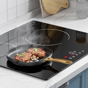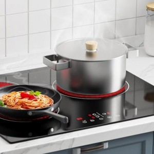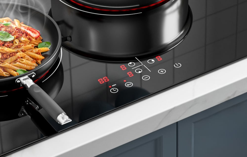 A főzőlap három fűtési zónával van felszerelve: a bal felső 1200 W-os, a bal alsó 1800 W-os és a jobb oldali 2500 W-os. Ez az elrendezés lehetővé teszi, hogy egyszerre több ételt is elkészítsen optimális energiafogyasztás mellett. A kisebb mezőn szószt melegíthet, a közepes mezőn tésztát főzhet, a legnagyobb mezőn pedig húst süthet - mindezt egyszerre.