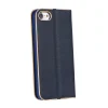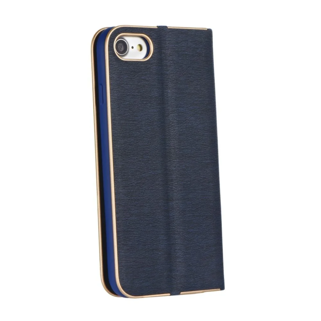 Elegáns tok fémes kerettel a telefon fokozott védelméért. A vonzó textúra és a kellemes tapintású anyag olyan stílusos tokot hoz létre, amely kiemeli a készülék modern dizájnját. A puha velúr anyag a tok belsejében és a tartó részben megvédi a készüléket mindkét oldalról a sérülésektől és karcolásoktól. A fogantyú rugalmas szilikonból készült, és kivágásokkal rendelkezik. Az alumínium keret a széleken erősebbé teszi a tokot, és még jobban védi a készüléket. A fém és az eredeti anyag kombinációja egyedi és modern kompozíciót hoz létre, aminek köszönhetően a készülék stílusos és elegáns megjelenést kap. A tok egy kis zsebbel is rendelkezik, amely kényelmesen tárolhatja a dokumentumokat vagy bankjegyeket. A tok vízszintes talppal van ellátva filmek vagy fényképek megtekintéséhez. Egy erős mágnes biztosítja a tok könnyű bezárását és kinyitását, és megakadályozza, hogy véletlenül kinyíljon.