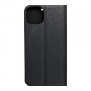Elegáns tok fémkerettel a telefon fokozott védelméért. A vonzó textúra és az érintésre kellemes anyag stílusos tokot alkot, amely kiemeli a készülék modern kialakítását. A puha velúr anyag belül és a tartó részben is megvédi a készüléket mindkét oldalról a sérülésektől és karcolásoktól. A tartó rugalmas szilikonból készült, és kivágásokkal rendelkezik. Az alumínium keret a széleken erősíti a tokot, és még jobban védi a készüléket. A fém és az eredeti anyag kombinációja egyedi és modern kompozíciót hoz létre, amelynek köszönhetően a készülék stílusos és elegáns megjelenést kap. A tok kis zsebbel is rendelkezik, amely praktikus iratok vagy bankjegyek számára készült. A tok vízszintes alappal rendelkezik filmek vagy fényképek nézésére. Egy erős mágnes biztosítja a tok könnyű zárását és nyitását, valamint megakadályozza a véletlen kinyílást.